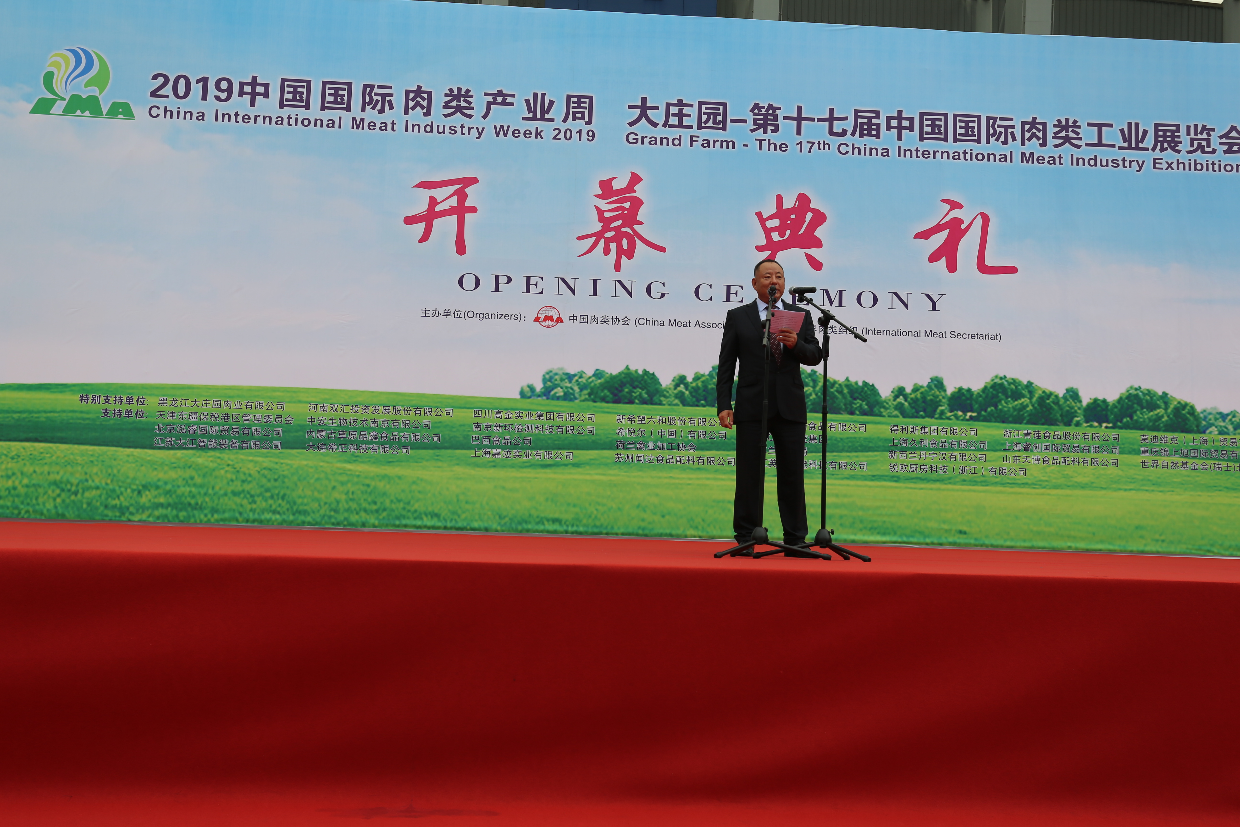 9月26日上午九時,大莊園——第十七屆中國國際肉類工業展覽會在成都世紀城新國際會展中心隆重開幕,大莊園集團董事長陳希濱先生致開幕詞。